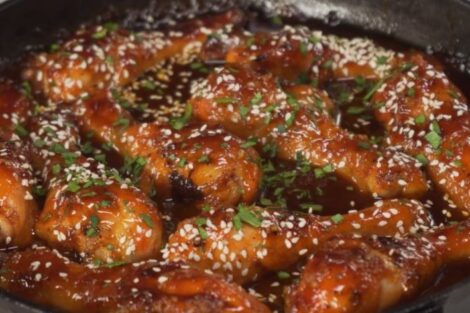 Курячі гомілки або, як їх ще називають, ніжки запечені в духовці з ароматним часниково-медовим соусом, посипані кунжутом. Це дуже смачна та апетитна страва, яку можна приготувати за 30 хвилин. Відмінний рецепт, якщо звичайні страви з курки вже набридли і хочеться щось цікаве.