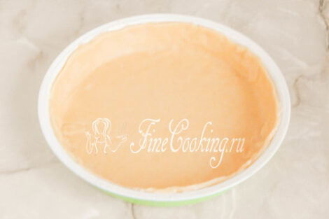 Я використовувала круглу форму діаметром 22 сантиметри. Нічим її не змащувала, тому що у складі тіста досить багато вершкового масла. Викладаємо розкатаний пласт тіста у форму, робимо рівне дно та бортики.