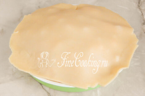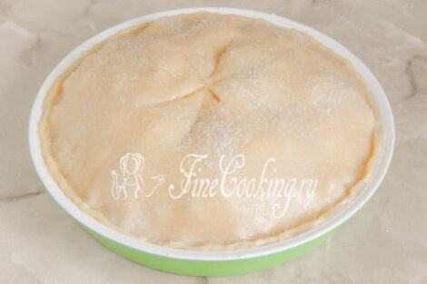 Накриваємо начинку другим пластом тіста, щільно, але ніжно притискаючи його до яблук.