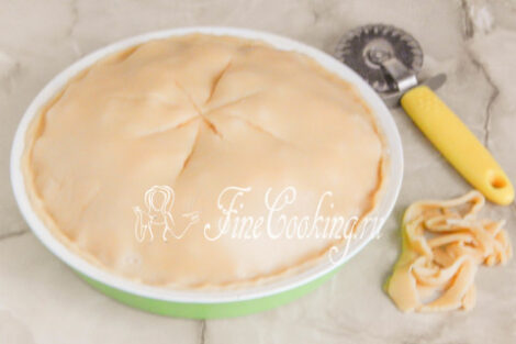 Защипуємо краї, щоб у процесі випікання з пирога не витік сік. Надлишки тіста зрізаємо - можете зліпити з них печиво і пекти разом з яблучним пирогом. Обов'язково робимо в центрі заготовки розрізи, щоб через них виходила пара.