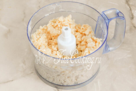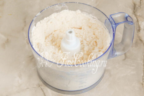 Швидко-швидко все змішуємо, щоб вийшла велика крихта – у комбайні все виходить за лічені секунди. Перевірити тісто можна тактильним способом: стисніть жменю у кулаку. Якщо тісто все ще розсипається, значить у ньому недостатньо вологи – підливаємо по чайній ложці крижаної води, продовжуючи замішувати у комбайні. Іноді вода і зовсім не потрібна - це залежить від вологості борошна і жирності вершкового масла (що воно жирніше, тим менше в ньому води).