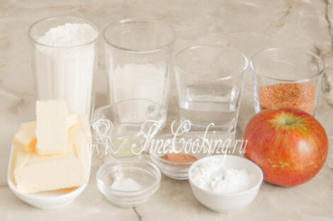 Для приготування смачного яблучного пирога нам знадобляться такі продукти: свіжі яблука, борошно пшеничне (вищого сорту), вершкове масло, цукор-пісок і тростинний цукор, вода, лимонний сік, кукурудзяний крохмаль, мелена кориця і сіль.