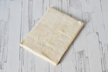 • Листкове тісто розкотіть на щедро посипаною мукою|борошном| поверхні столу.