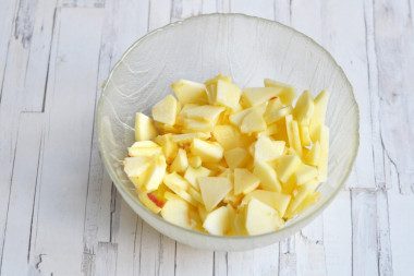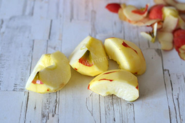 • Яблука очистіть, розріжте на 4 частини та видаліть насіння та плодоніжки.