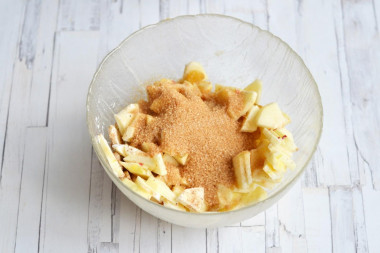• Додайте до яблук коричневий чи звичайний цукор. Все добре перемішайте.